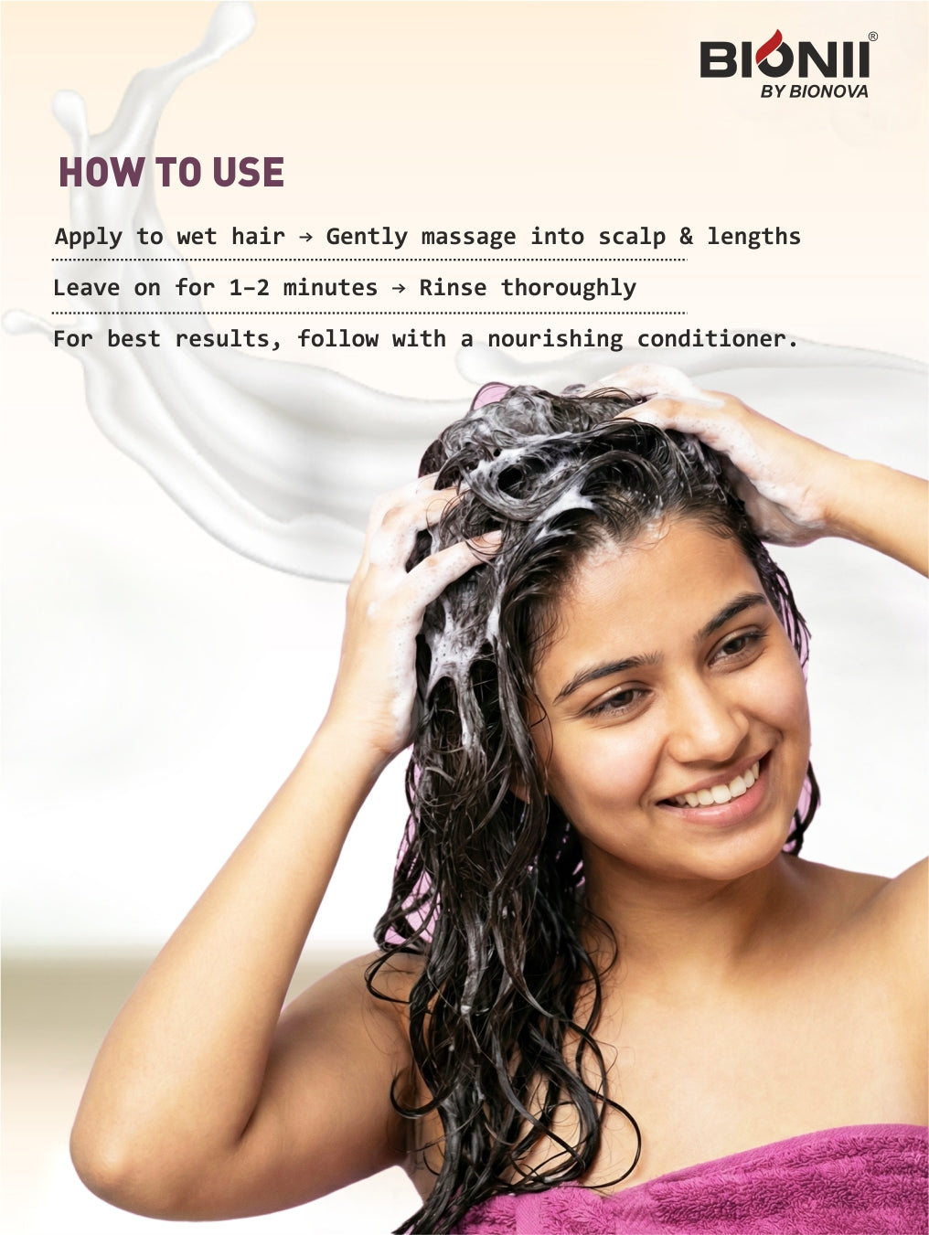 Massage gently into scalp and lengths