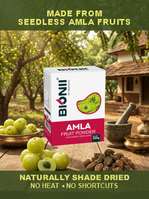 Bionii ensures every batch of Amla Powder is hygienically processed, quality-checked, and carefully packed to retain purity, aroma, and consistency you can trust.