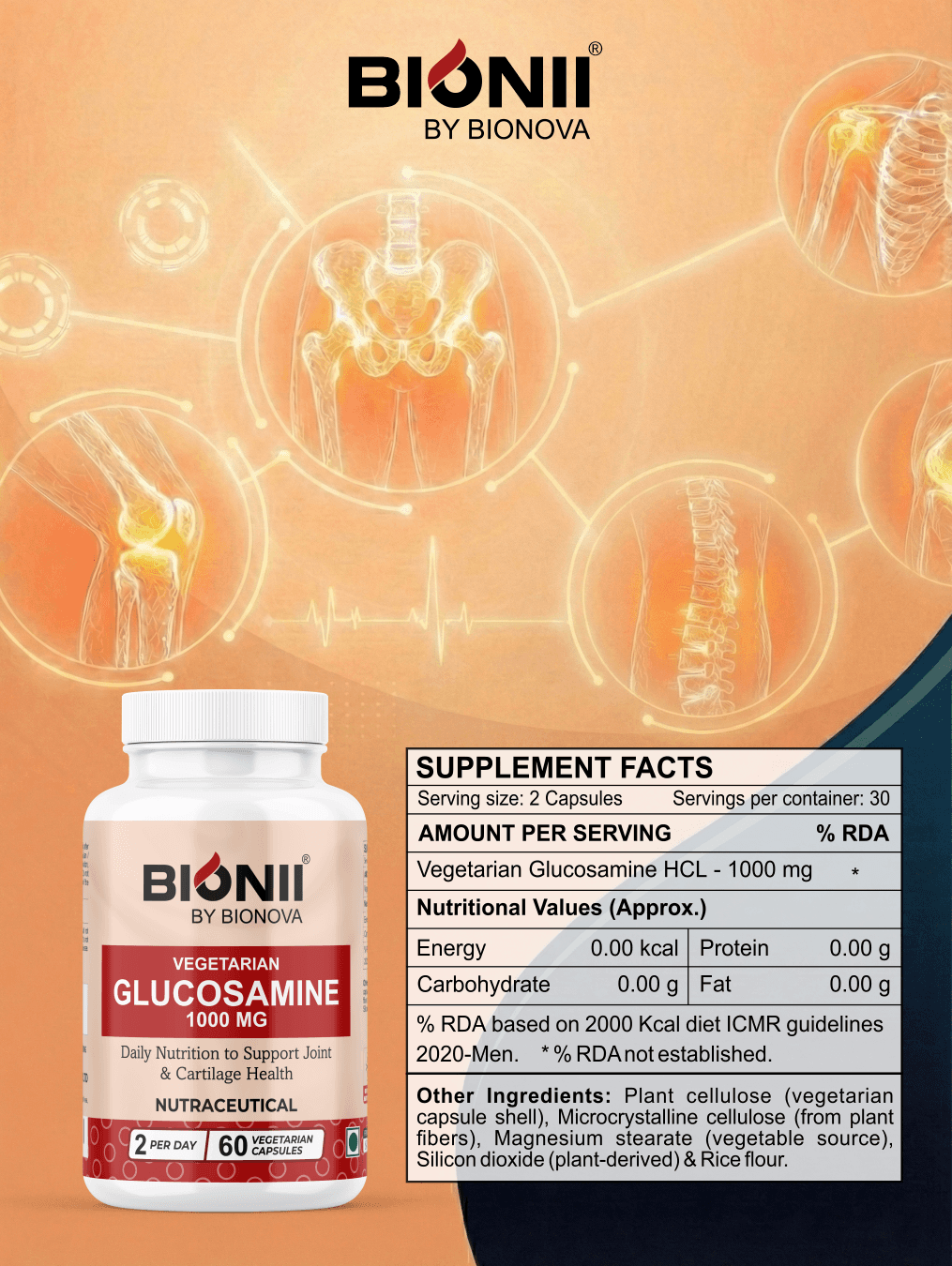 Every step should feel easy. GLUCOSAMINE Vegetarian 1000 mg Capsules are designed to support joint comfort and cartilage health so you can move freely every day.