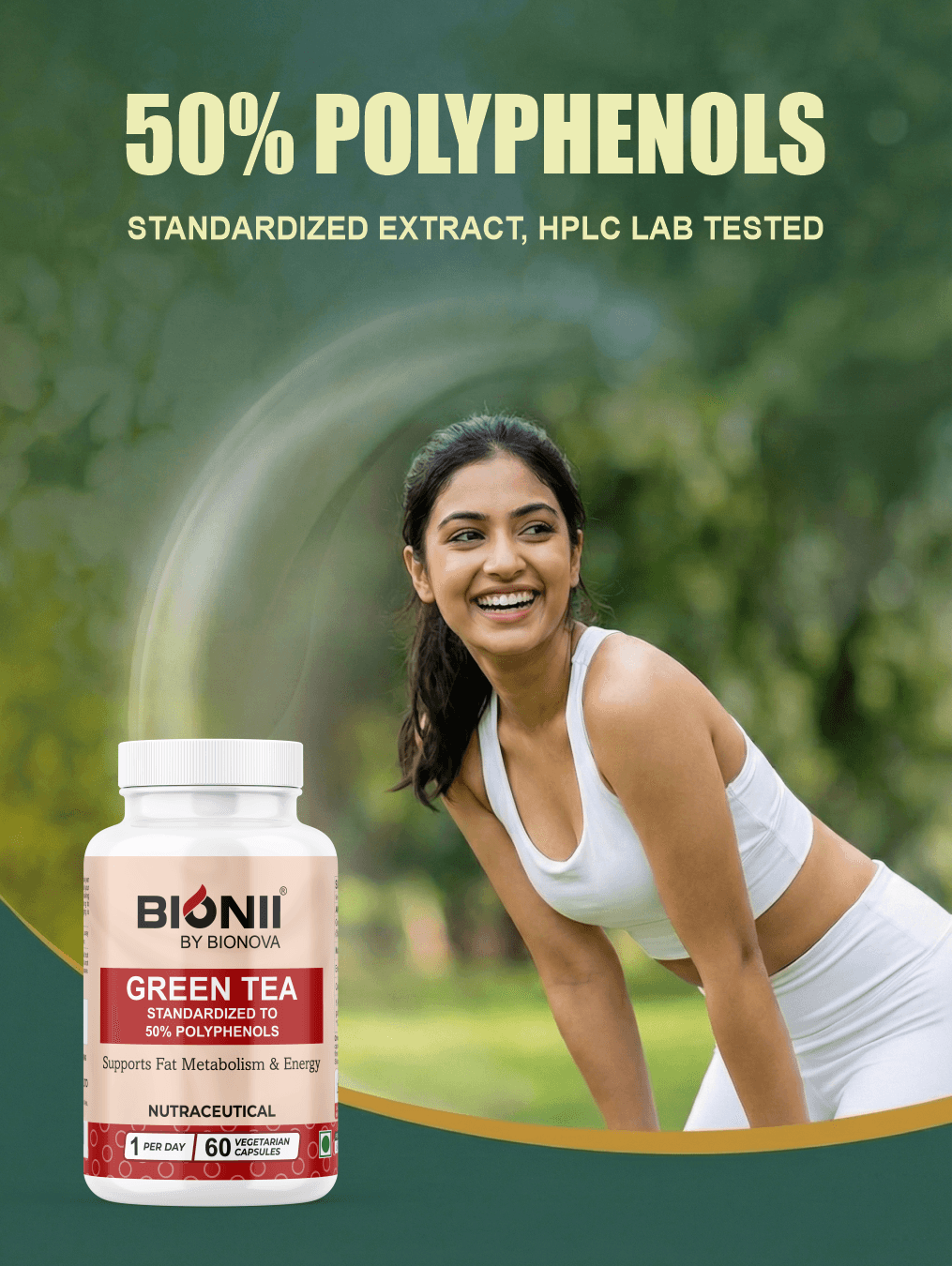 Imagine the calm of a fresh morning, fuelled with light, natural energy. Green Tea Capsules capture the essence of premium green tea leaves in a concentrated, easy-to-take form. Standardized to 50% polyphenols, this herbal formula supports fat metabolism, antioxidant protection, and sustained energy throughout the day.