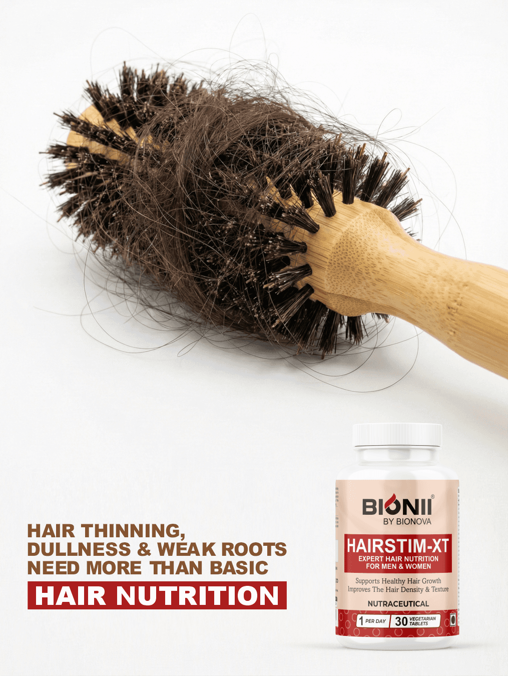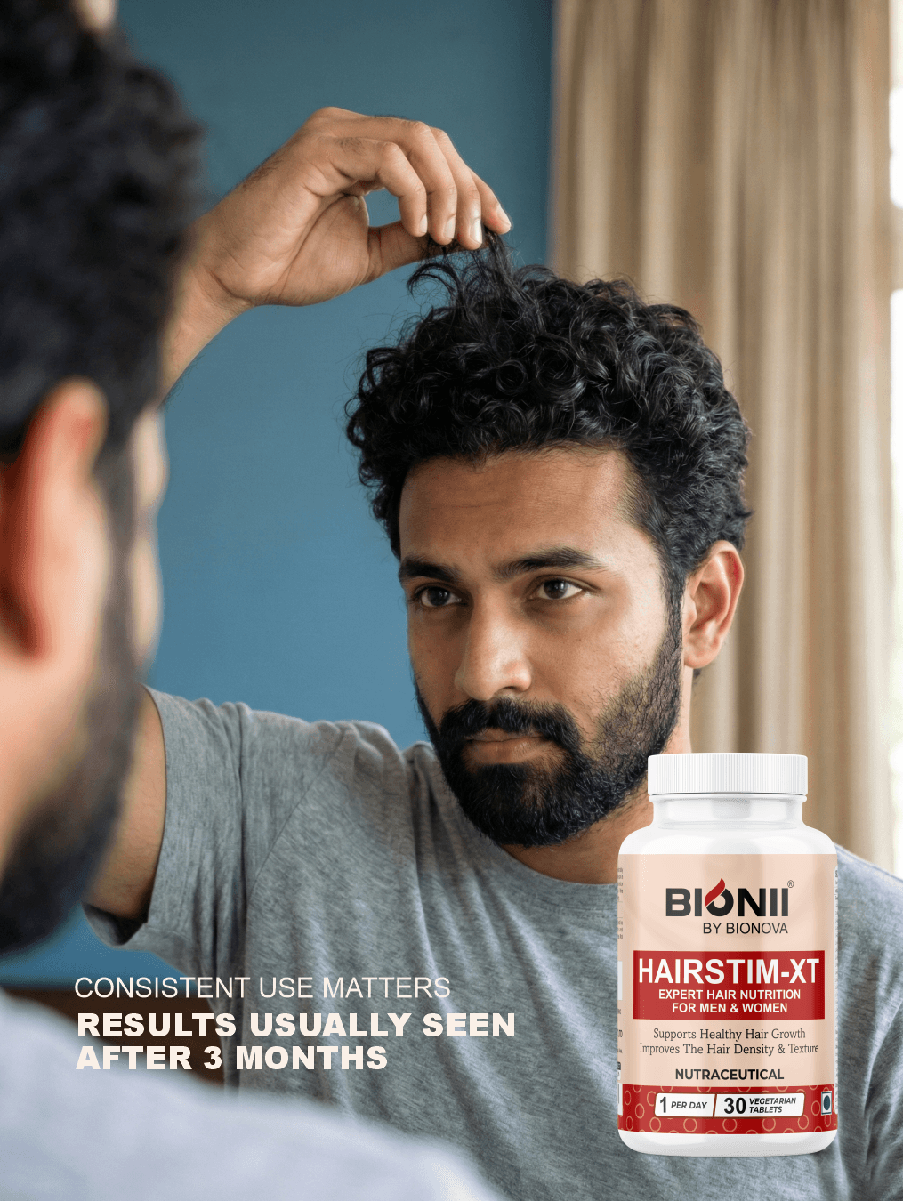 With ingredients like Bhringraj, Omega-3 flaxseed extract, biotin, zinc, and iron, HAIRSTIM-XT works at the cellular level to strengthen hair follicles and support long-term hair vitality.