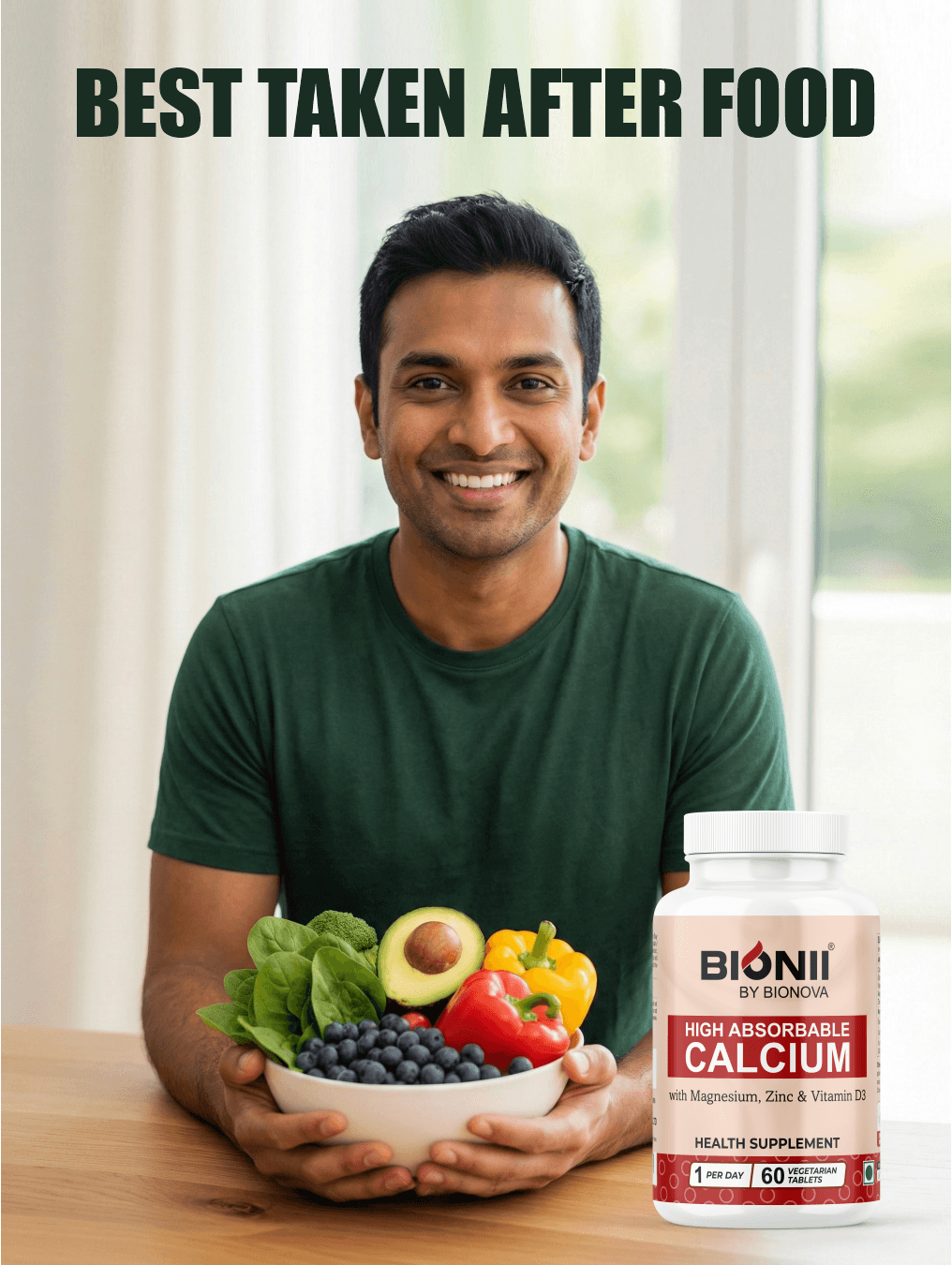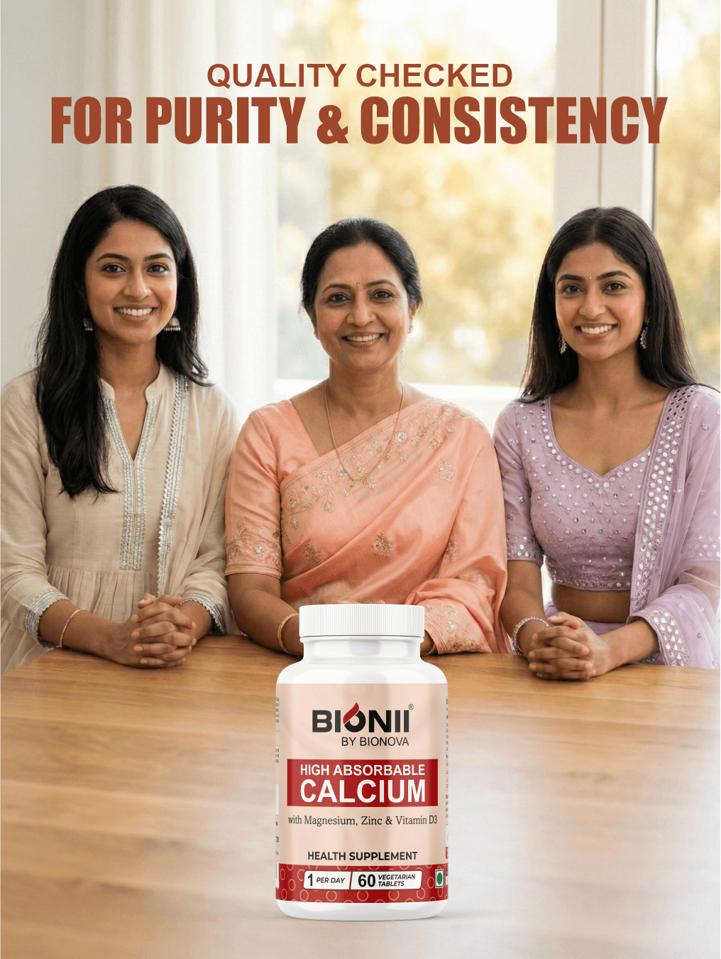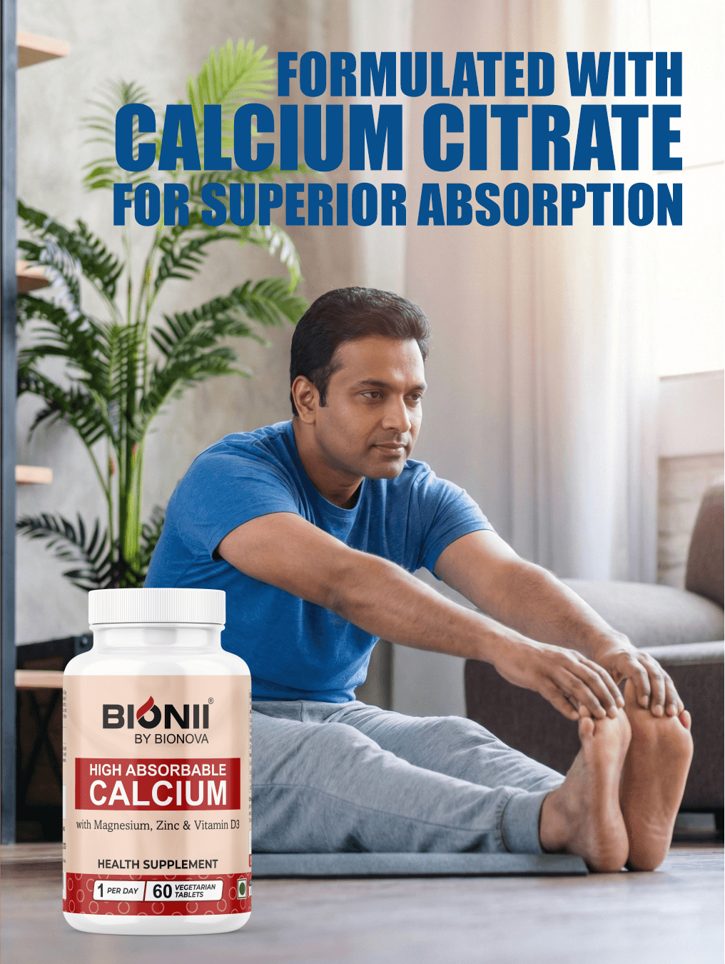 Strong bones are built quietly, every single day. High Absorbable Calcium Tablets are crafted with calcium citrate, a form known for better absorption, and enhanced with vitamin D3, magnesium, and zinc for complete bone nourishment.