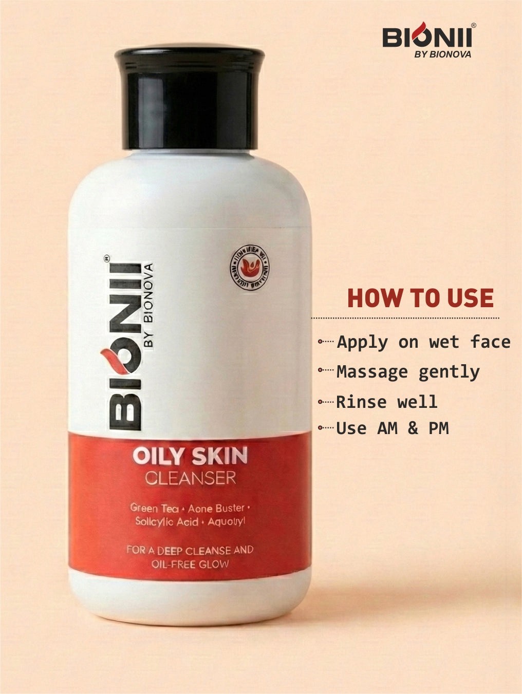 Inspired by ancient cleansing traditions, Bionii Cleanser for Oily Skin 100g transforms your daily face wash into a refreshing ritual. Its smooth, lightweight gel texture melts into a gentle lather, washing away excess oil, dirt, and pollution without disturbing your skin’s natural balance. Green Tea calms and refreshes, Salicylic Acid helps keep pores clear, and Aquasyl maintains lasting hydration. Free from harmful chemicals, this cleanser leaves your skin feeling clean, soft, and comfortably fresh—never tight or greasy. A balanced, effective cleanser for oily skin, crafted for everyday confidence and clarity.